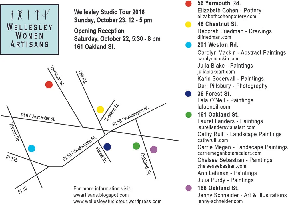 **Saturday Evening** will be a reception at Laurel Lander's Studio on 161 Oakland Street where we show all our work gallery style.